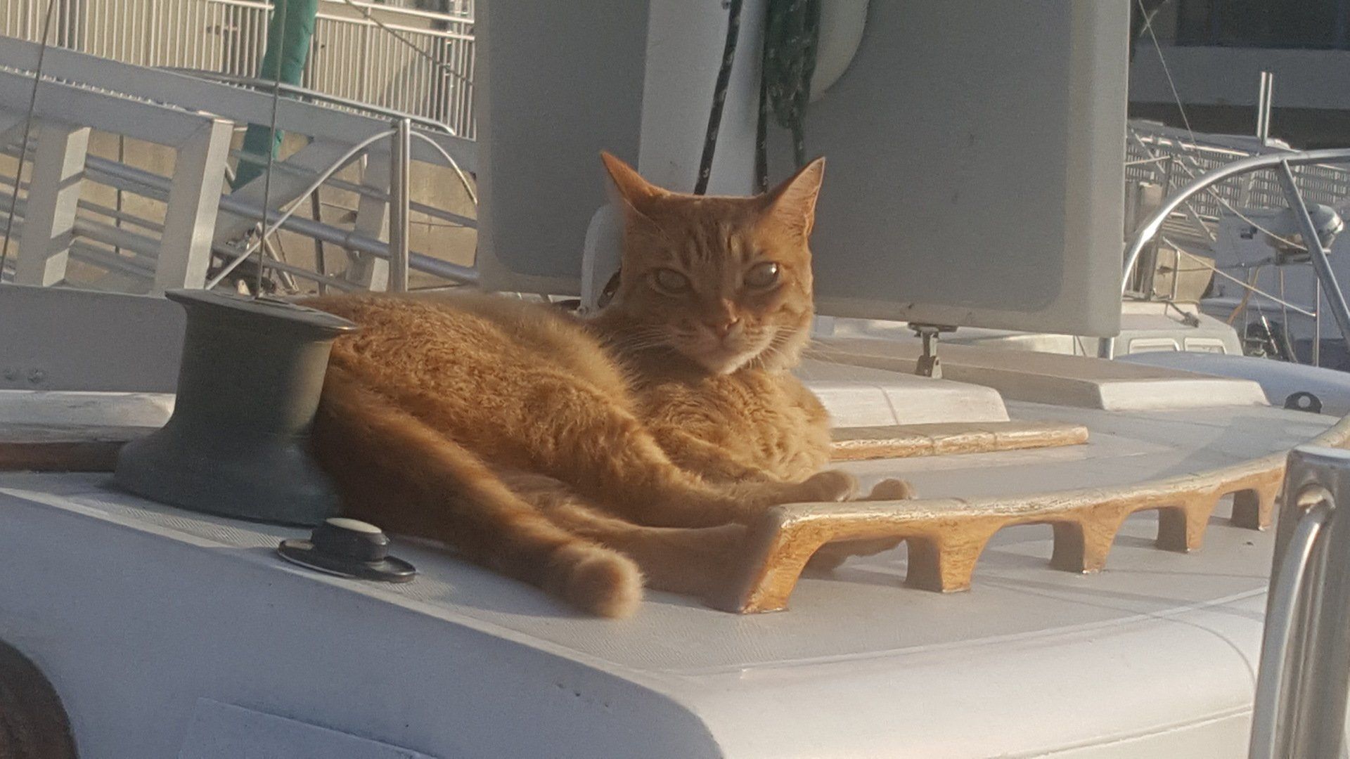 Murray the Cat is the honorary recipient of the Coveted Commodore’s Corinthian Spirit award for dedicated service (as a greeter and protector of the club-house and port) at the historic SCCYC, given by then Commodore Trevor. Possibly the only feline to have such an honor.